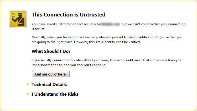 SSL certifikat lahko izda praktično vsakdo, kar pa še ne pomeni, da spletni uporabniki ne bodo ločili med zaupanja vrednim in sumljivim izdajateljem. Če izdajatelja ključa ni na seznamu, ki je prednaložen v spletnem brskalniku, se bo obiskovalcu ob obisku strani prikazalo obvestilo, prikazano na spodnji sliki.